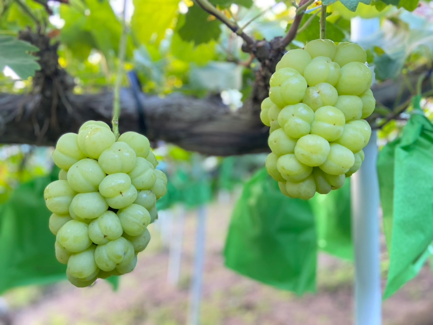 【 葡萄の女王 】 種類: シャインマスカット2房入り × 1箱 房重: 600〜750グラム(1房あたり) 配送: 通常便 発送: 9月下旬〜10月上旬まで